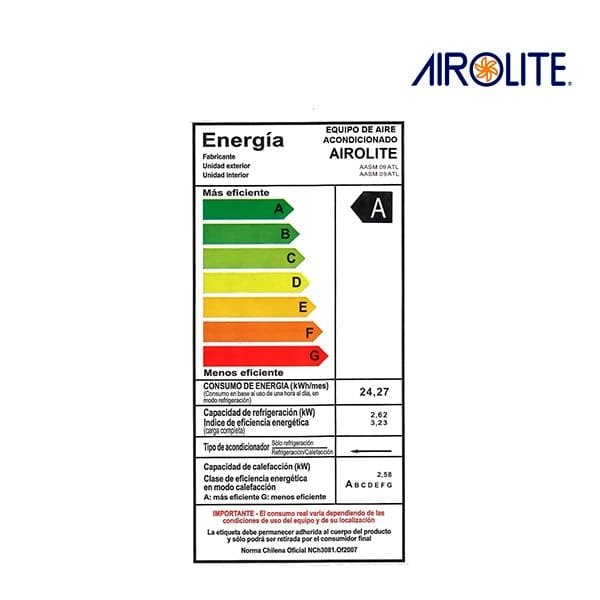 Ahorro energético: Clasificado con una eficiencia energética de Clase A, el Airolite AASMI 12 ATI te permite disfrutar de un ambiente confortable mientras ahorras en electricidad, gracias a su Índice de Eficiencia Energética (EER) de 3.21 en modo frío y un Coeficiente de Rendimiento (COP) de 3.61 en modo calor.