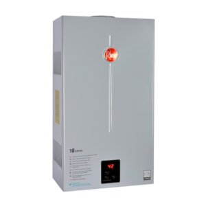 Calefont digital Rheem de tiro natural con tecnología modulante que regula la temperatura del agua y ahorra en el consumo de gas en casa. La tecnología modulante de Rheem permite reducir el consumo de gas y tener agua caliente siempre a temperatura constante.