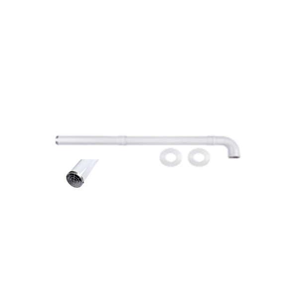 Este kit de ventilación de aluminio blanco incluye un terminal de D60x380 mm, un codo de 90º de D60, una extensión de D60x500 mm y 2 discos de D60. Otro dato no menos importante que hay que tener en cuenta: el largo total del conducto no debe superar los 4.000 mm para el conducto de diámetro de 60 mm.